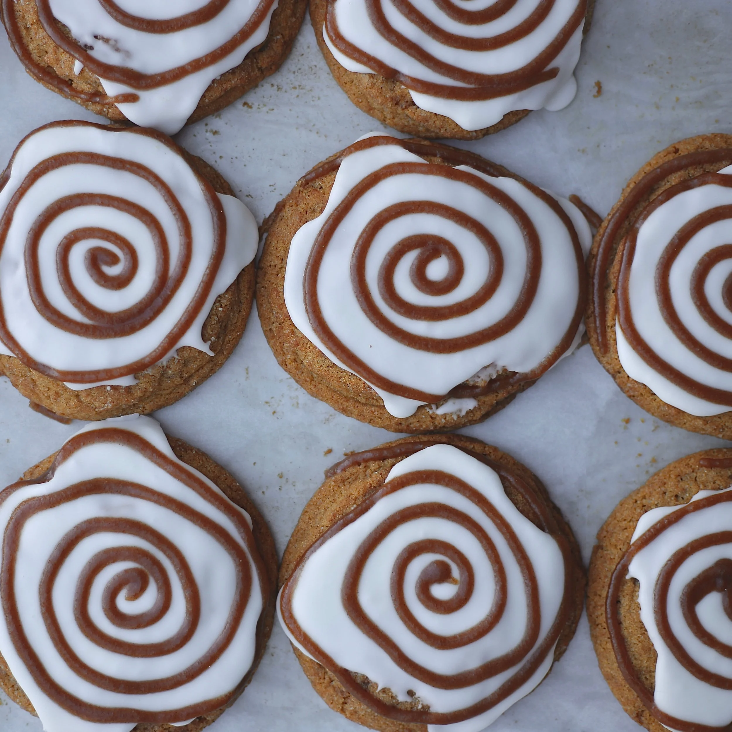 Pumpkin spiced cookie dough swirled with brown sugar and cinnamon filling and baked, topped with vanilla glaze and a cinnamon sugar spiral!